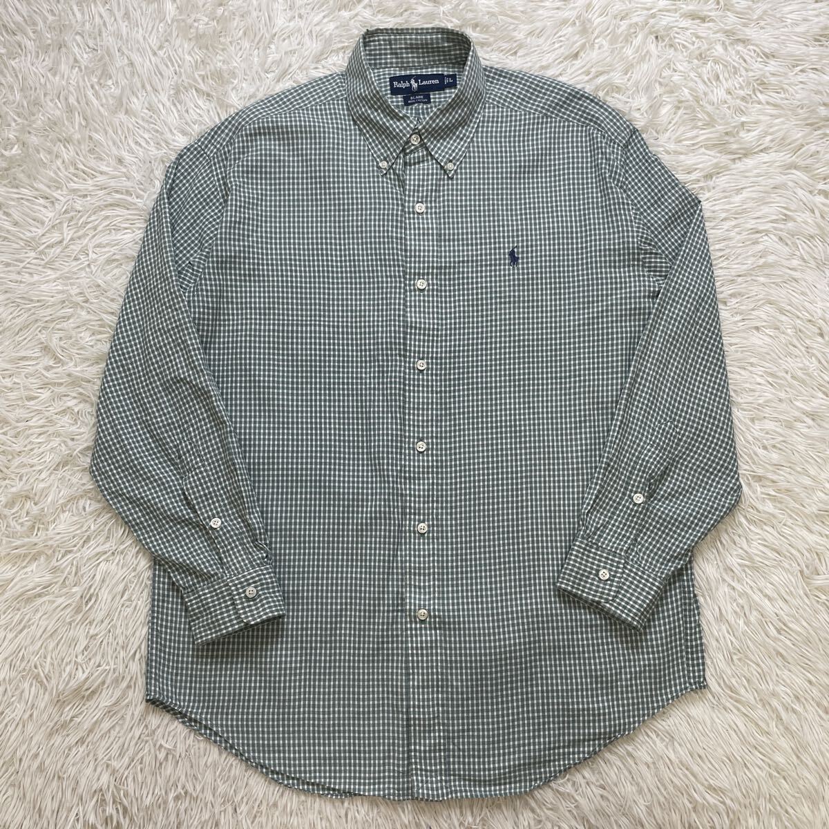> 送料230円 Lサイズ美品 POLO RALPH LAUREN ポロ ラルフローレン 長袖 チェック柄 ボタンダウンシャツ ポニーロゴ刺繍