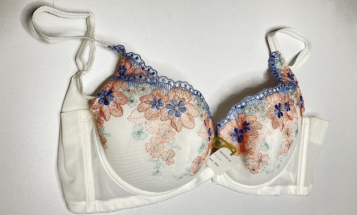 - CR16379-53 IB⑦【特価】新品 大きい ブラジャー E80 ホワイト 花柄 レース 脇高 刺しゅう ストレッチ おしゃれ 華やか レディース