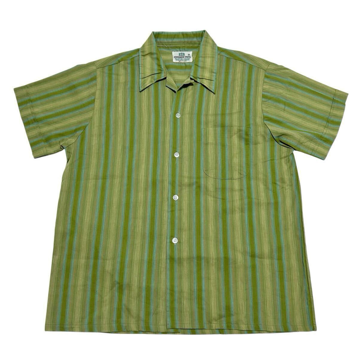 > 60s 70s オンブレ ストライプ 半袖 シャツ ボックス 日本製 M / ビンテージ ロカビリー シャドー 50s チェック BOX shirt vintage アロハ