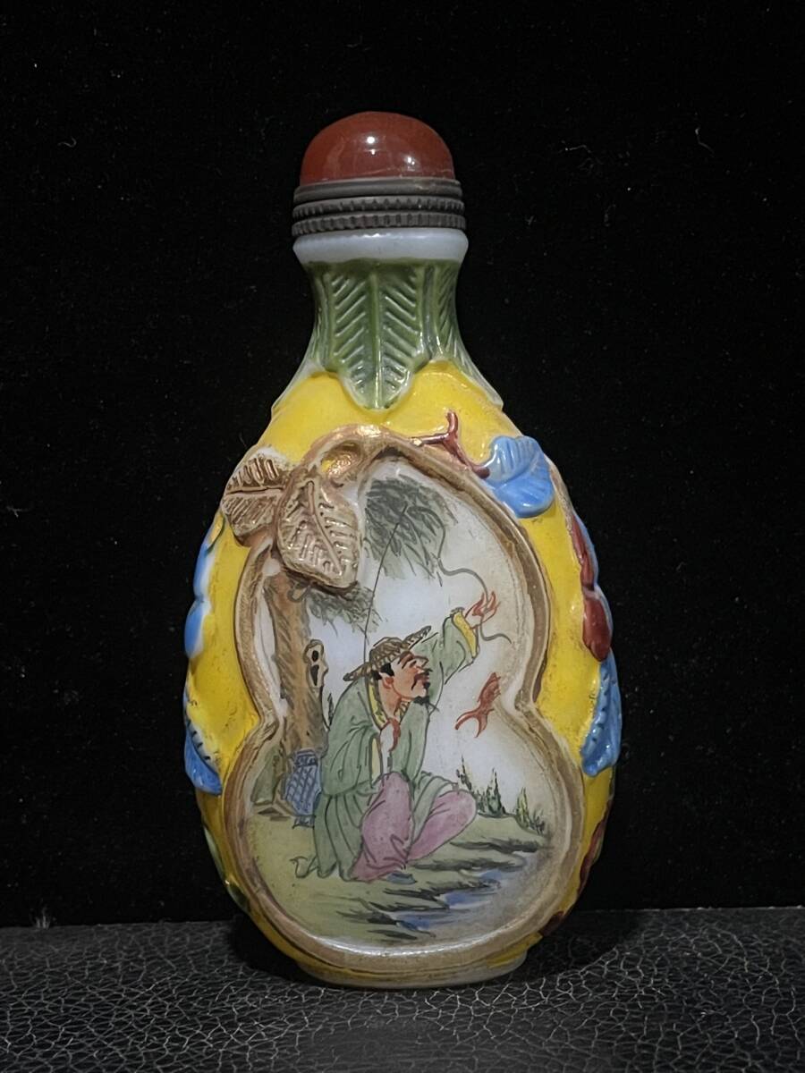 - 蔵友旧蔵出 琉璃製 細密彫 漁翁人物図 鼻煙壺 希少珍品 貴重品 置物 古賞物 中国古玩 中国古美術品