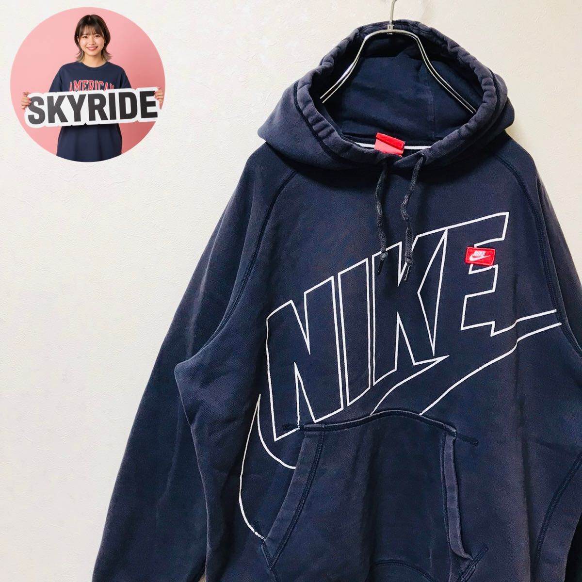 > 【人気】NIKE ナイキ 2000s メンズ パーカー L ネイビー ビッグロゴ ゆるだぼ ビッグシルエット コットン混 ストリート 古着 #TT0317