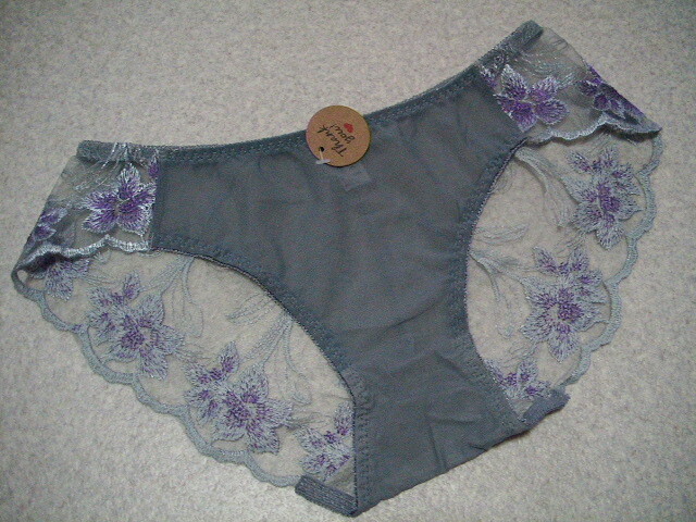 - 【豪華花柄刺繍 シースルーショーツ】◆グレー×パープル◆m24-2◆M◆