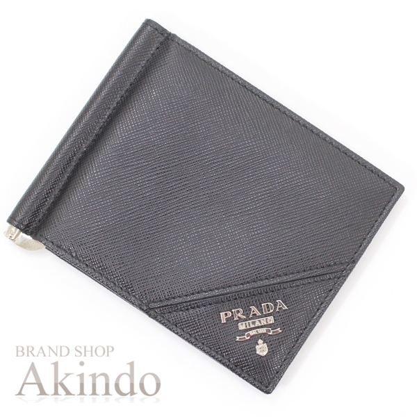 - 【新品同様】プラダ マネークリップ 財布 黒 ブラック PRADA サフィアーノ 2M1077 二つ折り財布 札入れ メンズ シルバー