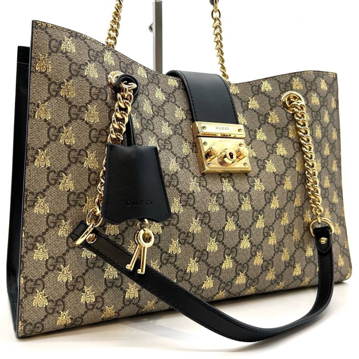 > 希少 GUCCI グッチ トートバッグ パドロック ビー チェーン スプリーム ミディアム バック 鞄 カバン ブラウンレディース