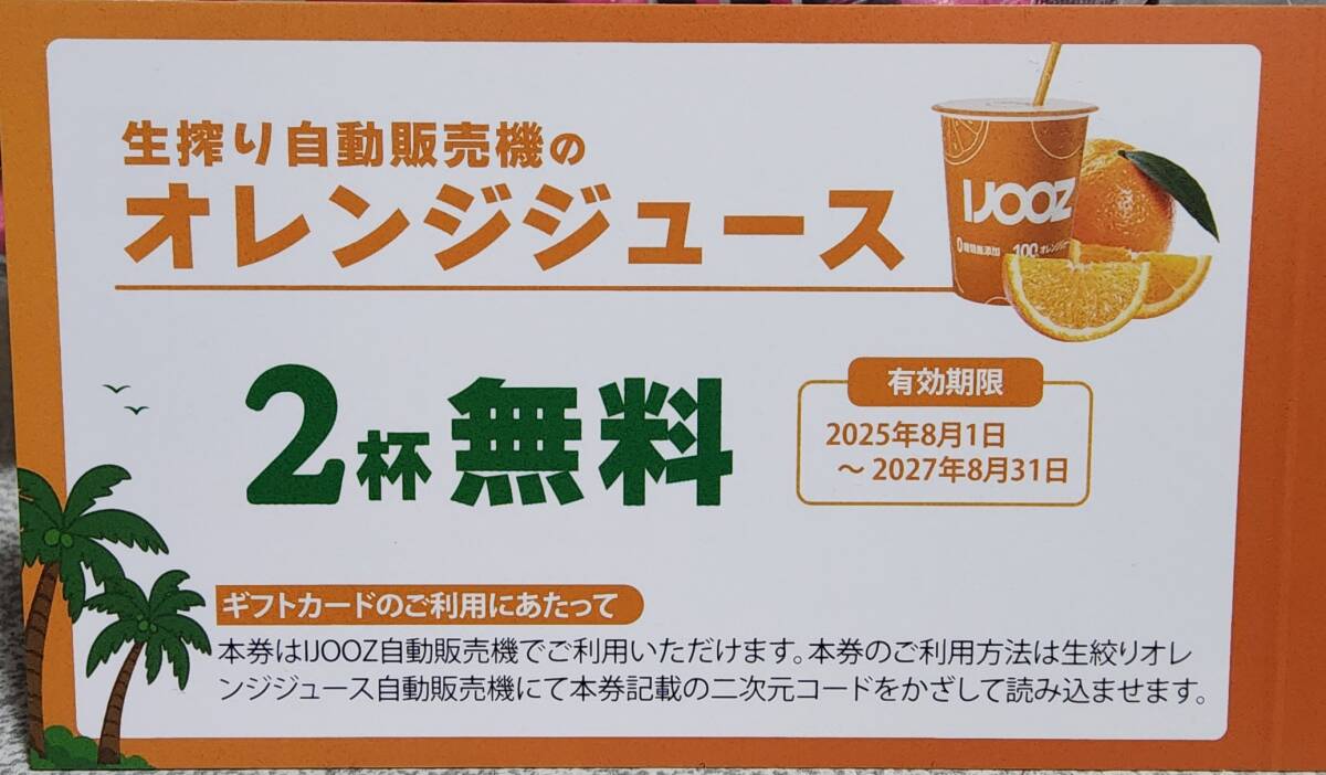 - □送料込み□ ギフトカード ijooz IJOOZ(アイジュース) ¥350×4杯分 チケット2枚発送