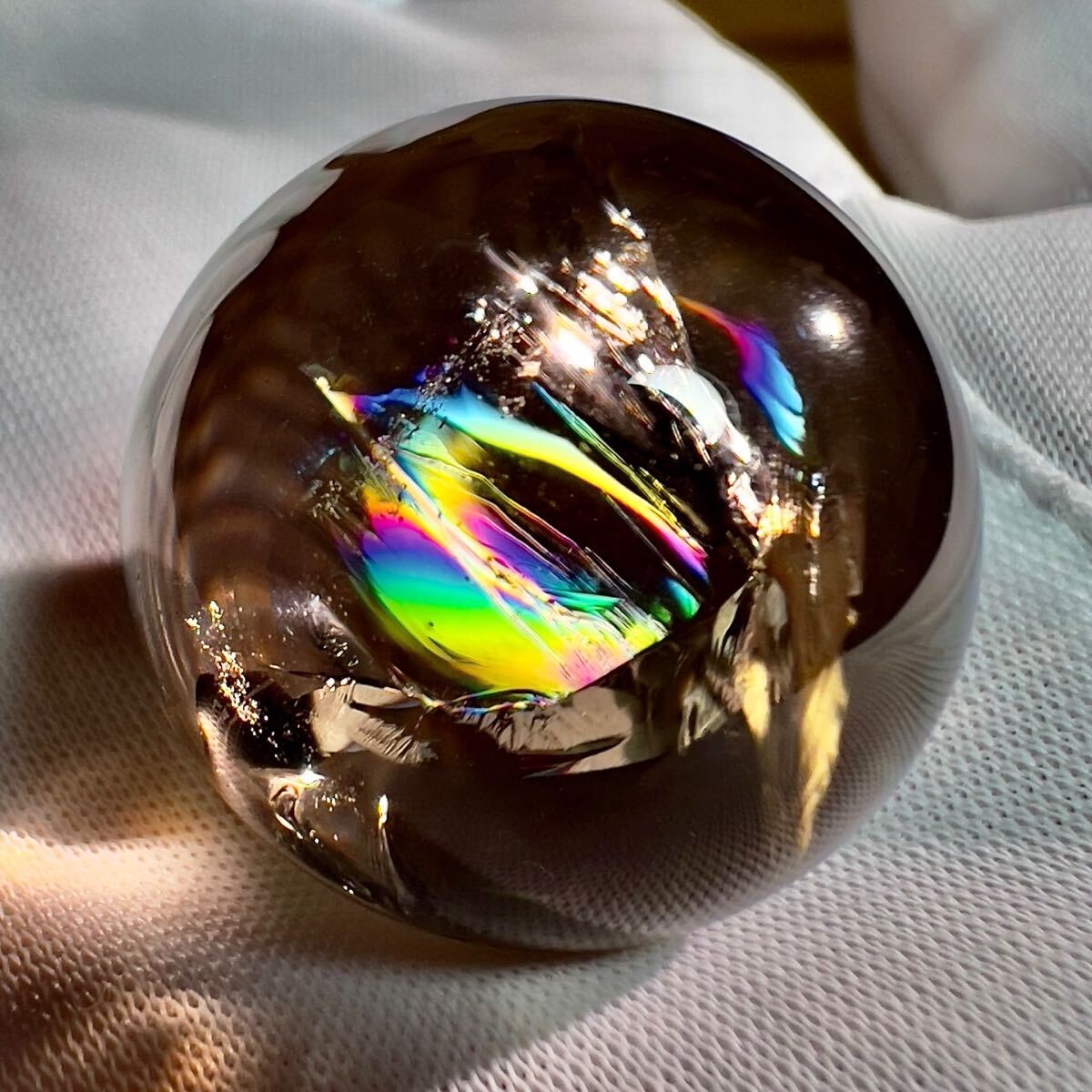 - スモーキークォーツ 煙水晶 ブラジル産 クォーツ 丸玉 スフィア レインボー 虹 天然石 原石 鉱物 鉱物標本 標本 鉱石 石
