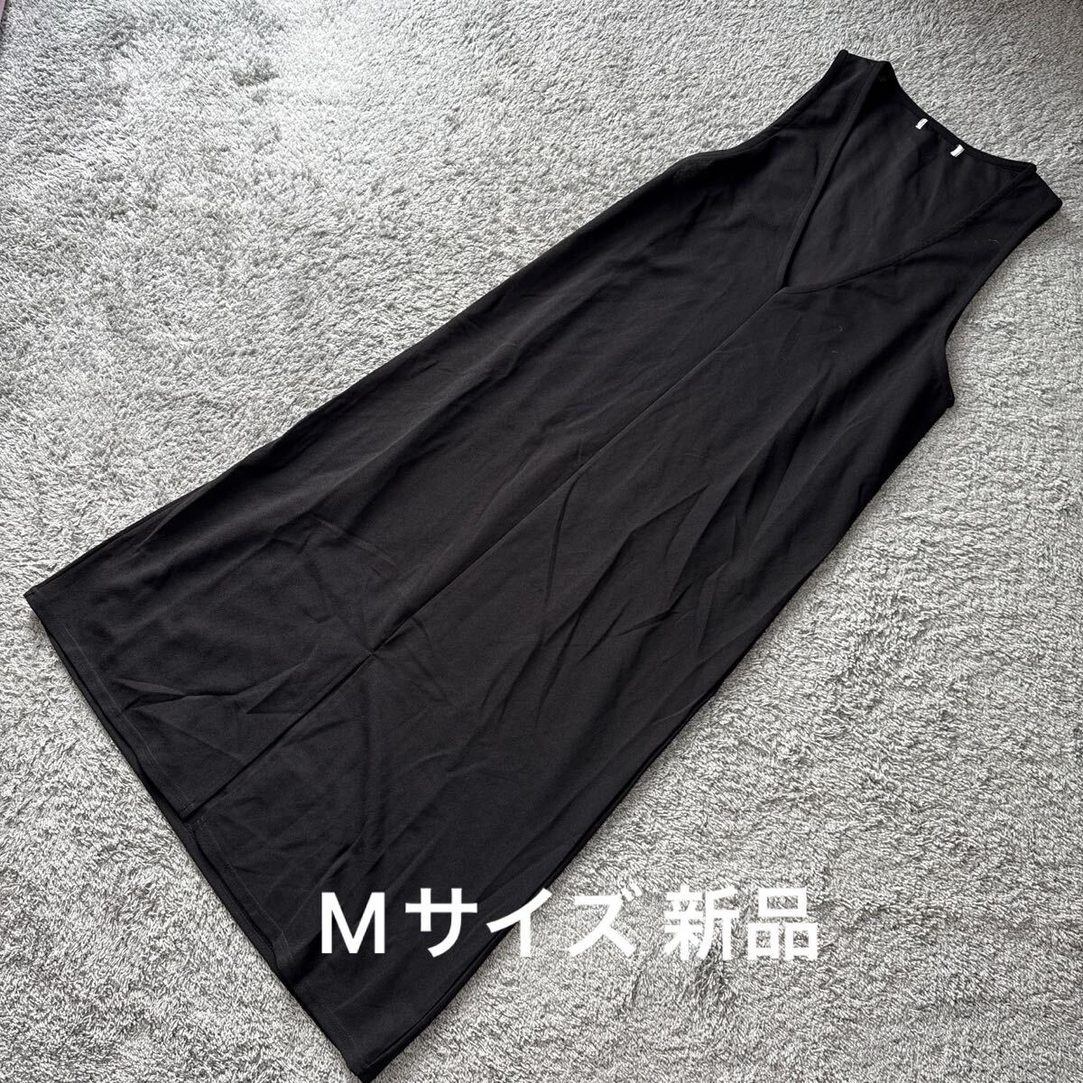 - センタースリットノースリーブロングワンピース黒M★ゆうパケット配送可能★新品38