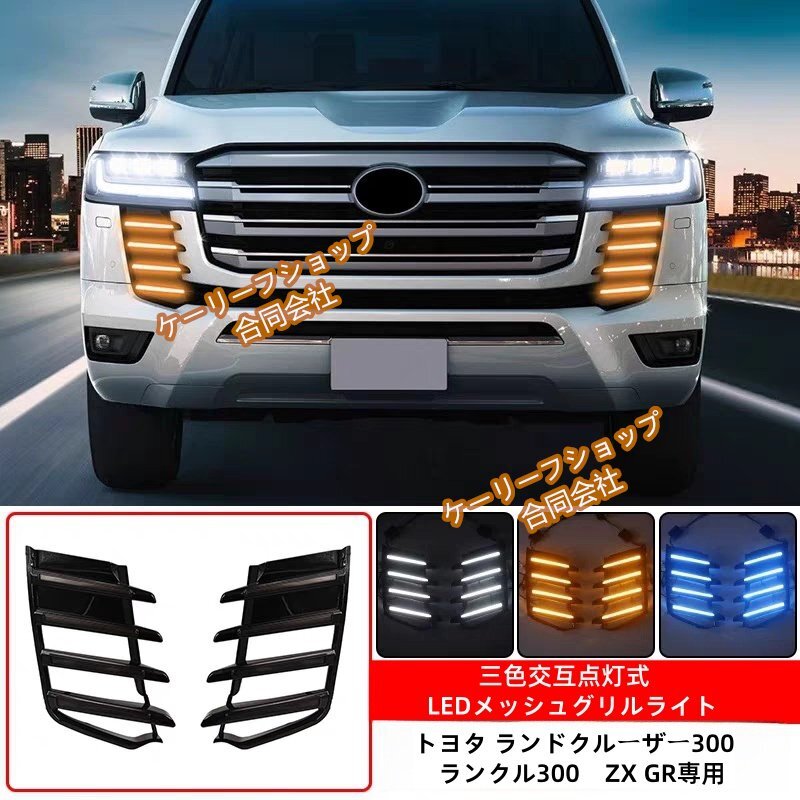 > トヨタ ランドクルーザー300 ランクル300 ZX GR専用 LEDフロントグリルバンパーガードスタイリングトリム 2022-2025