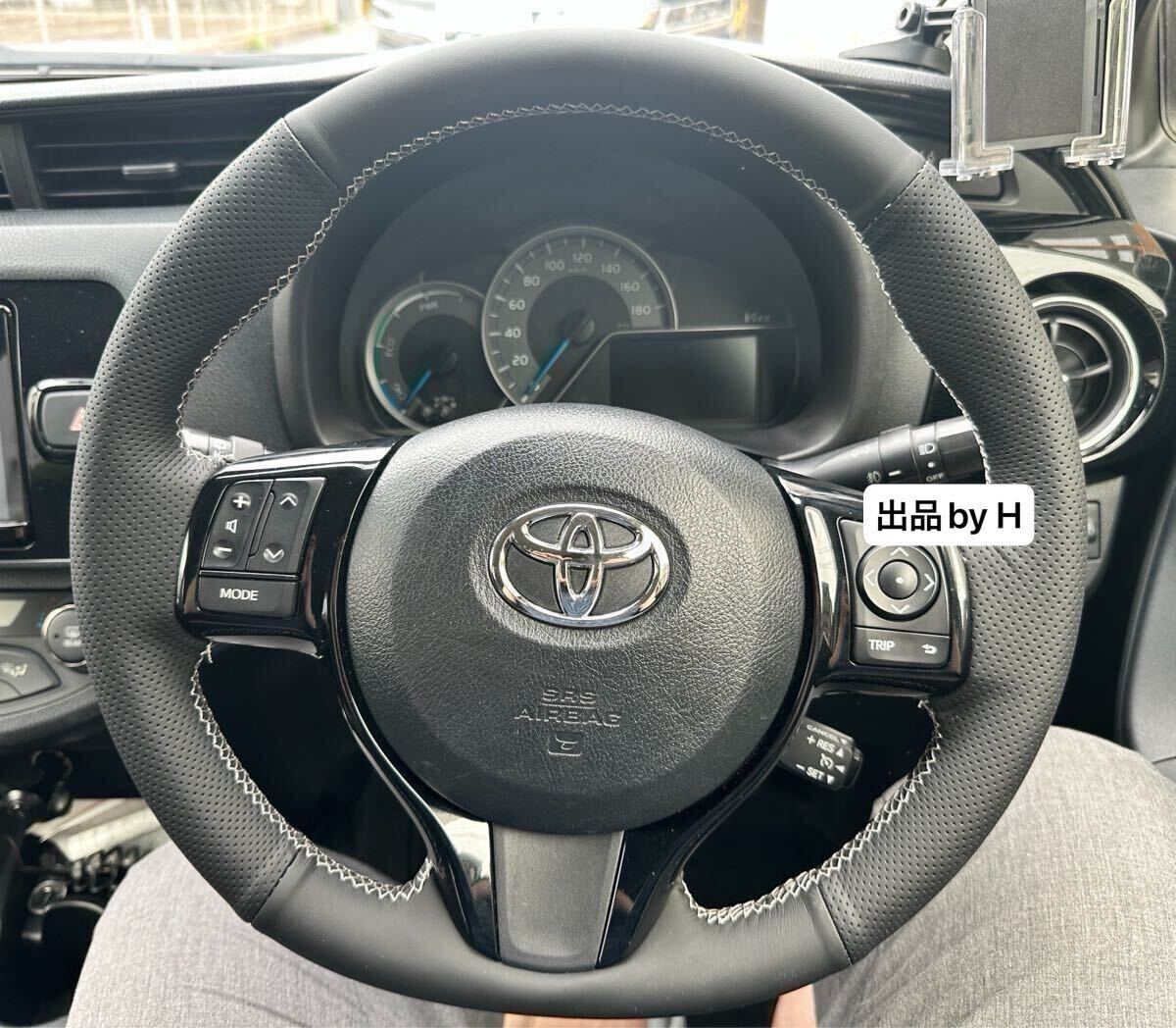 > 【残り1個, ステッチ色グレー】ステアリングホイールカバー(レザー) トヨタ ヴィッツ、ラクティス、シエンタ NCP131,NHP130,NHP170など