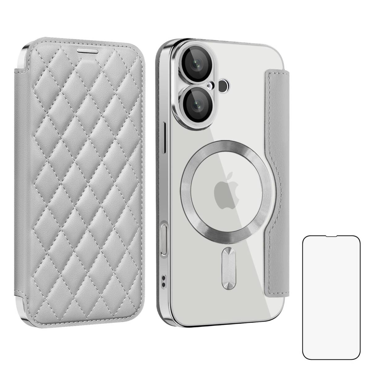 - 手帳型 magsafe対応 iPhone ケース 16 専用 カバー 財布型 ワイヤレス対応 6.1インチ 背面 透明 16 クリ