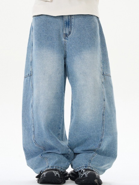- 新作 デニムパンツ ジーンズ ワイドパンツ メンズ ワークパンツ 男女兼用 ウォッシュ アメカジ 青/XL
