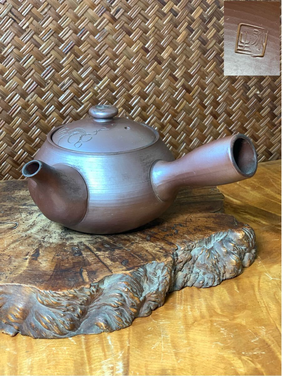 - 煎茶道具 萬古焼 弥生 陶印有 横手急須 茶道具 茶注 在銘 朱泥 常滑焼 茶器 煎茶器 古道具 時代物 骨董 古玩 懐石道具 和骨董 和美術 良品