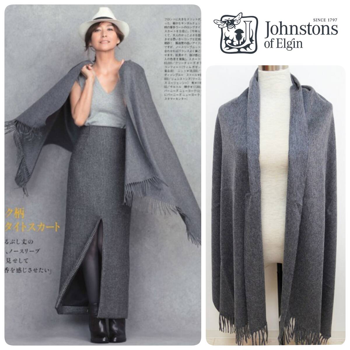 - 新品 国内正規タグ付 JOHNSTONS ジョンストンズ WA56 大判 カシミヤ ストール HA0300 Granite ミッドグレー 定価93500円 梨花さん着用