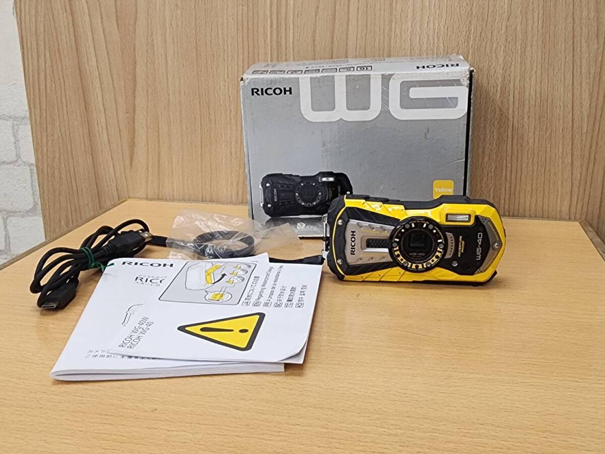 > M ☆★ ② R70923 RICOH リコー WG-40 防水デジタルカメラ イエロー USBケーブル・バッテリー・元箱・説明書付き ☆★