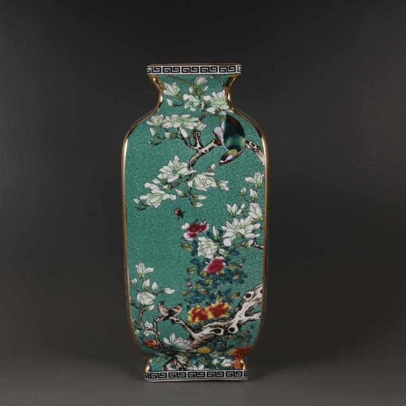 - 景徳鎮 官窯焼き 四方花瓶 花鳥花瓶 琺瑯彩 粉彩 磁器 置物 装飾 収蔵 コレクション ZH336