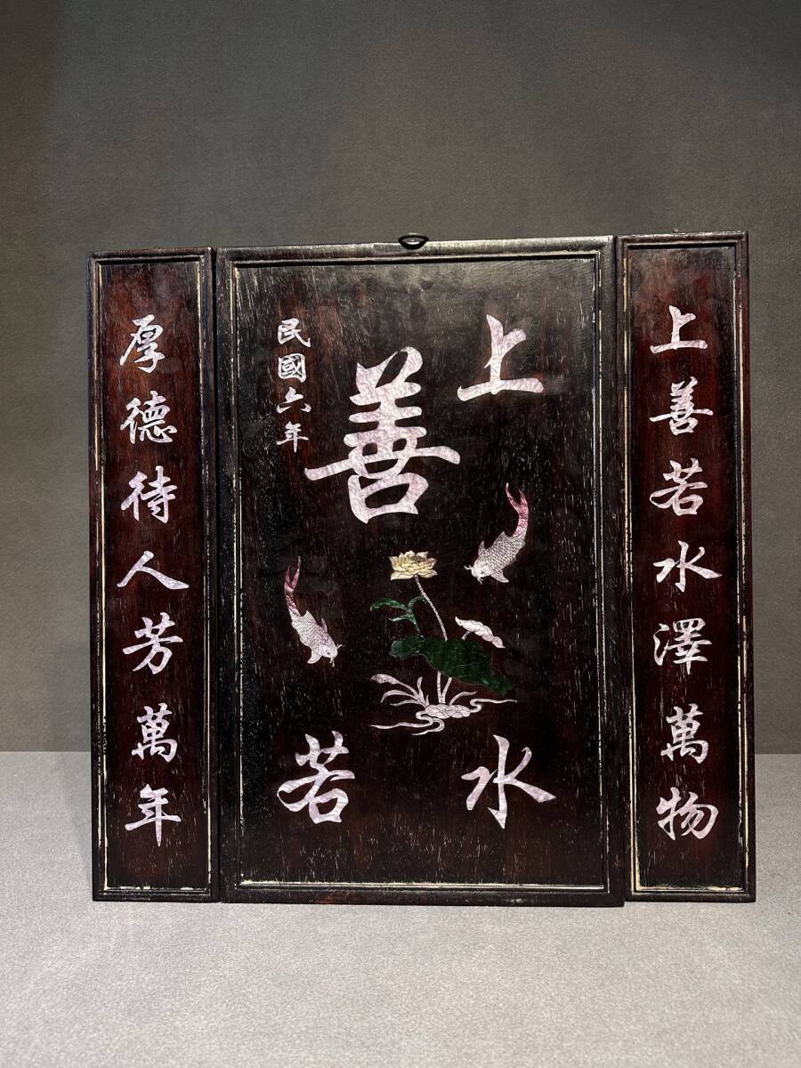 - 早期收集 旧藏 古紫檀木彫 嵌貝殼 上善若水 壁挂 墻挂 中堂挂屏 賞物 極細工 古賞物 東洋彫刻 中国唐物 時代物 骨董 中国古美術