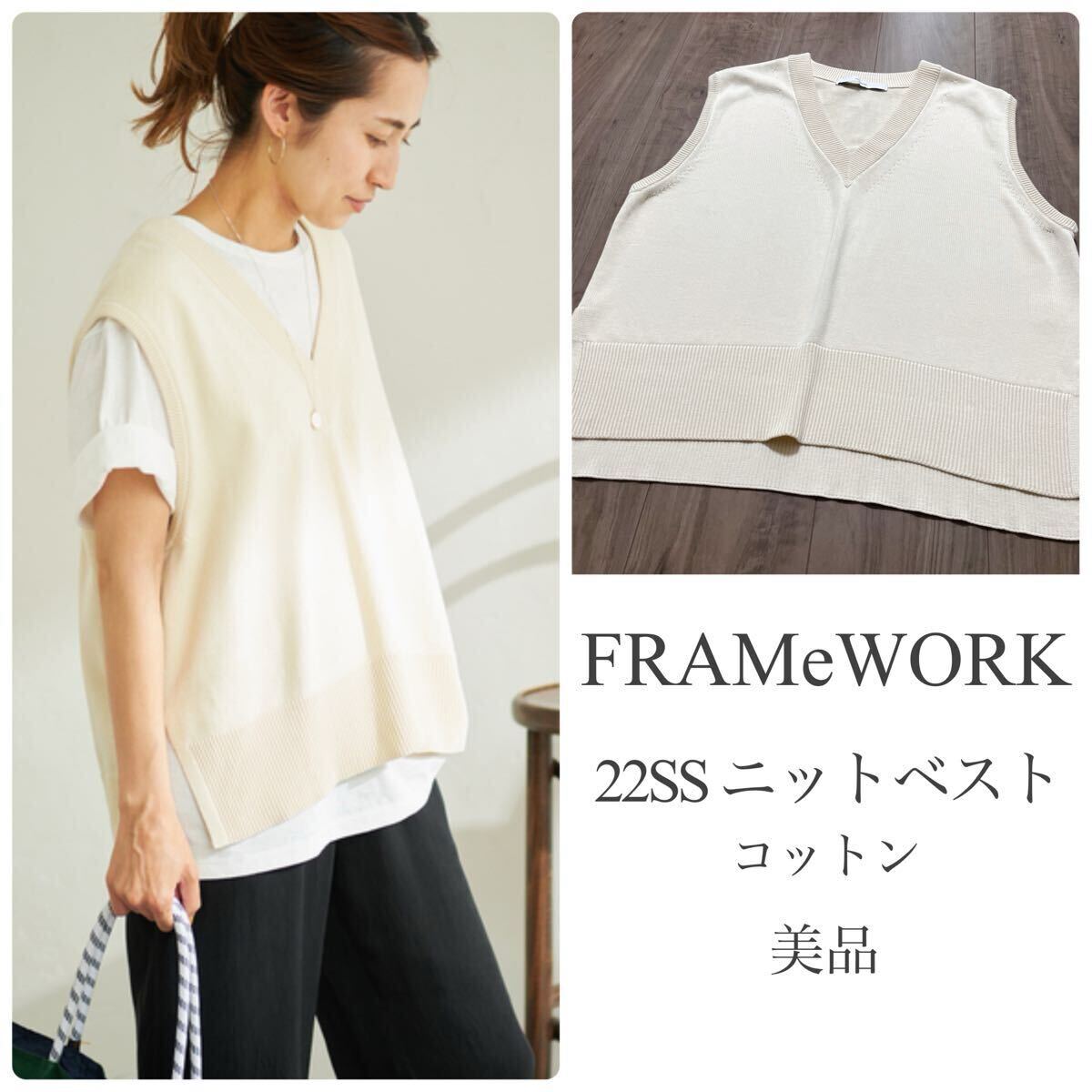 - FRAMeWORK【美品】22ssニットベスト コットン Vネック ノースリーブニット ウォッシャブル ホワイト アイボリー フレームワーク