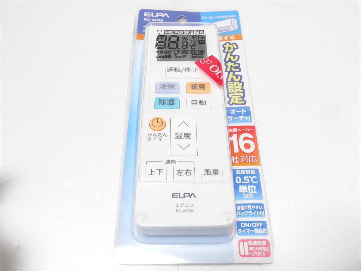 - 未使用に近い ELPA エアコン リモコン RC-AC38 電池入り 汎用 リモコン バックライト付き エルパ 送料320円 362