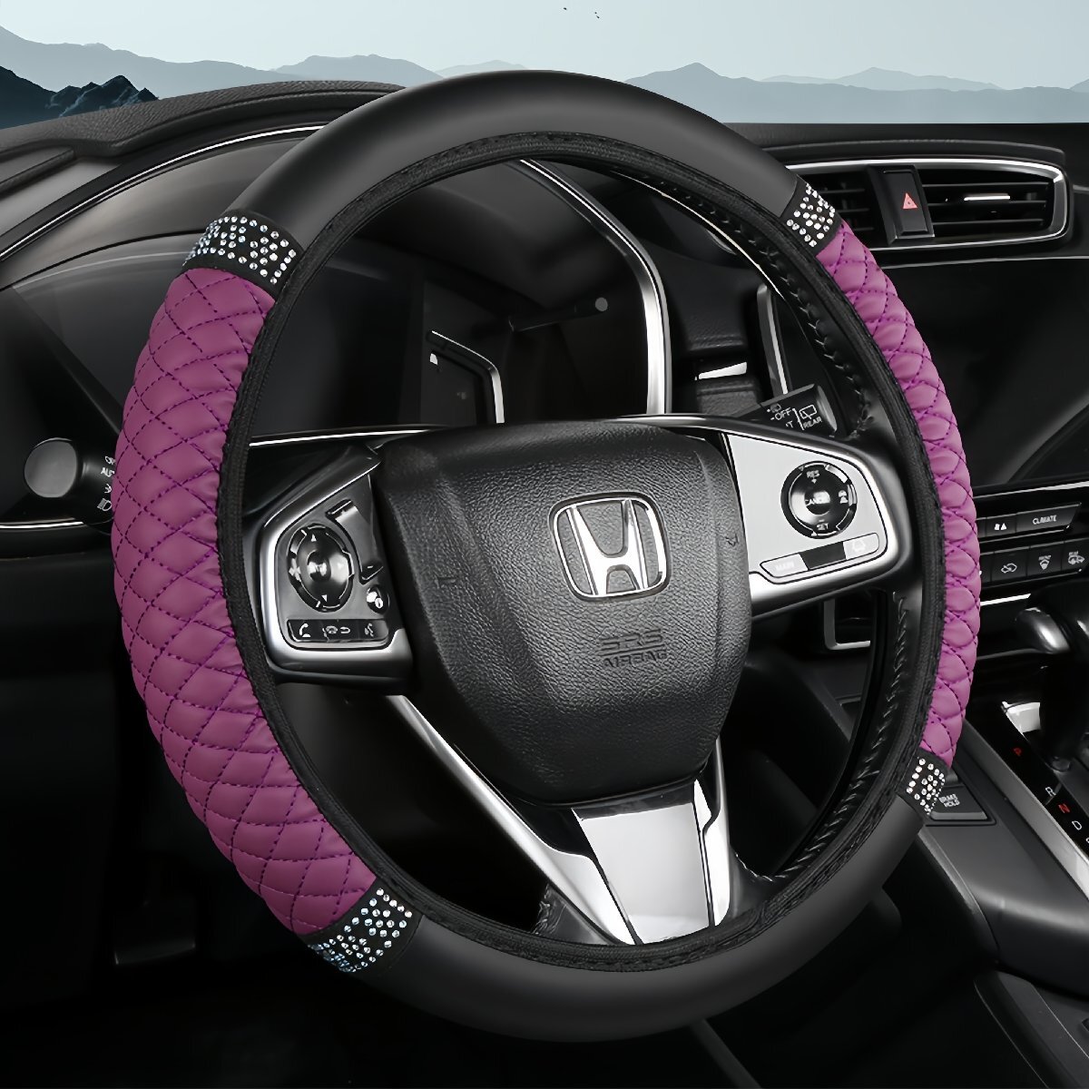 - ハンドルカバー ステアリングカバー キルティング 37~38cm 車用 ステッチ 耐摩耗 滑り止め O型 D型 マトラッセ調 ギャル 可愛い