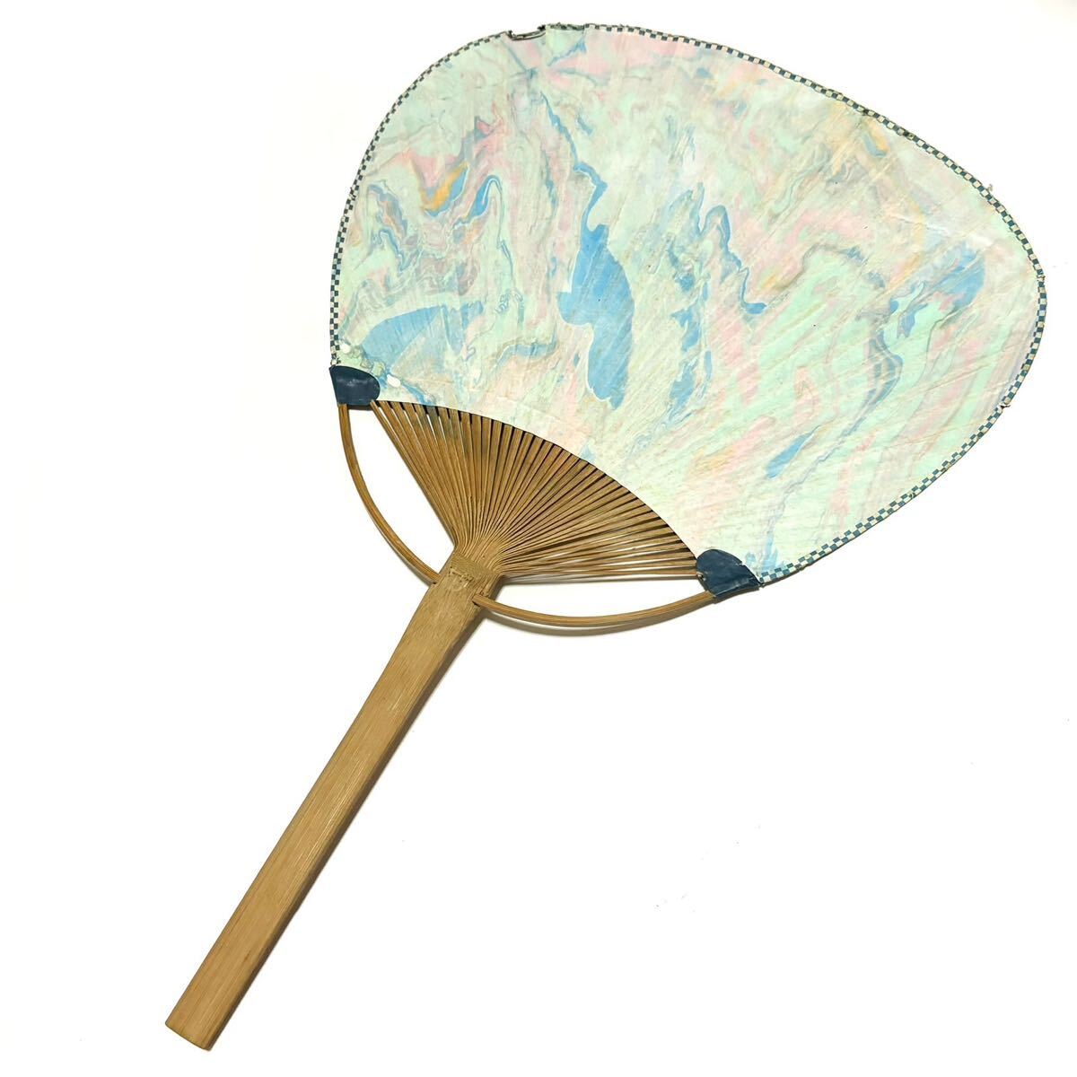 - 和紙竹製団扇 伝統和柄 祭 うちわ 藍 紺 墨流し マーブル柄 ピンク水色 レトロ 竹うちわ