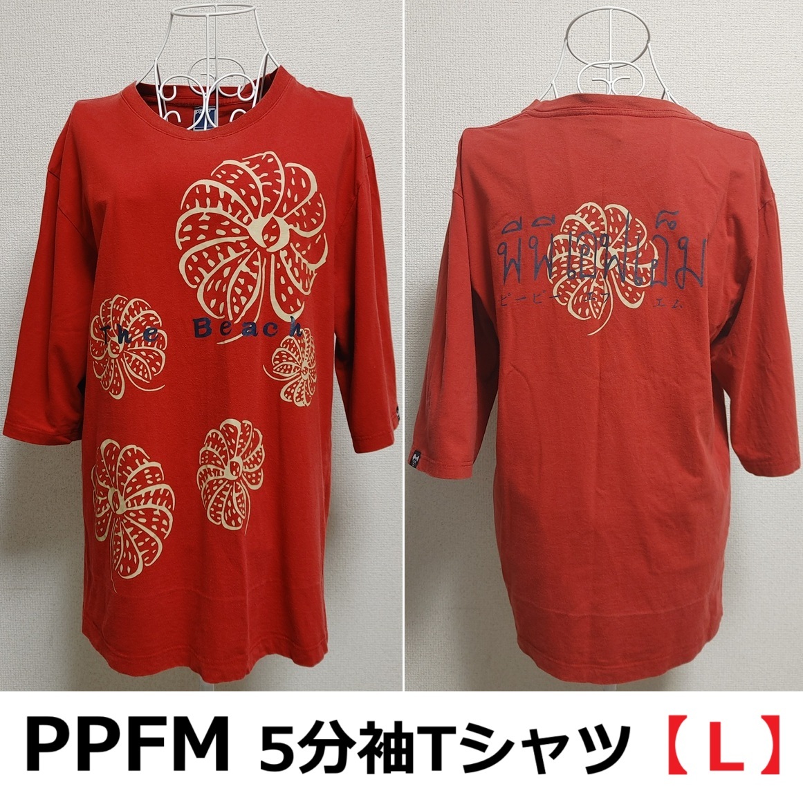 > PPFM 赤 F The Beach 五分袖 Tシャツ タイ語 Y2K 00s t-shirt 半袖 五分袖丈 ダーク レッド 神の服 神服 マルイ系 ヴィンテージ ビンテージ
