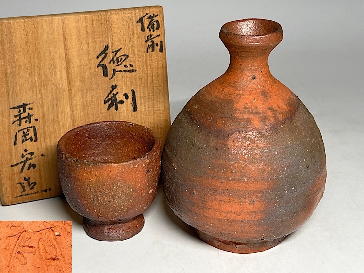 - 【瑞】森岡宏造 備前焼 徳利 共箱 栞