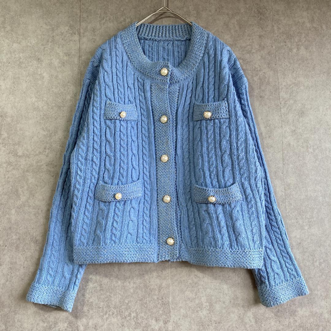 - カーディガン(ONE)ニットジャケット*パールボタン*可愛い*ウール混*韓国