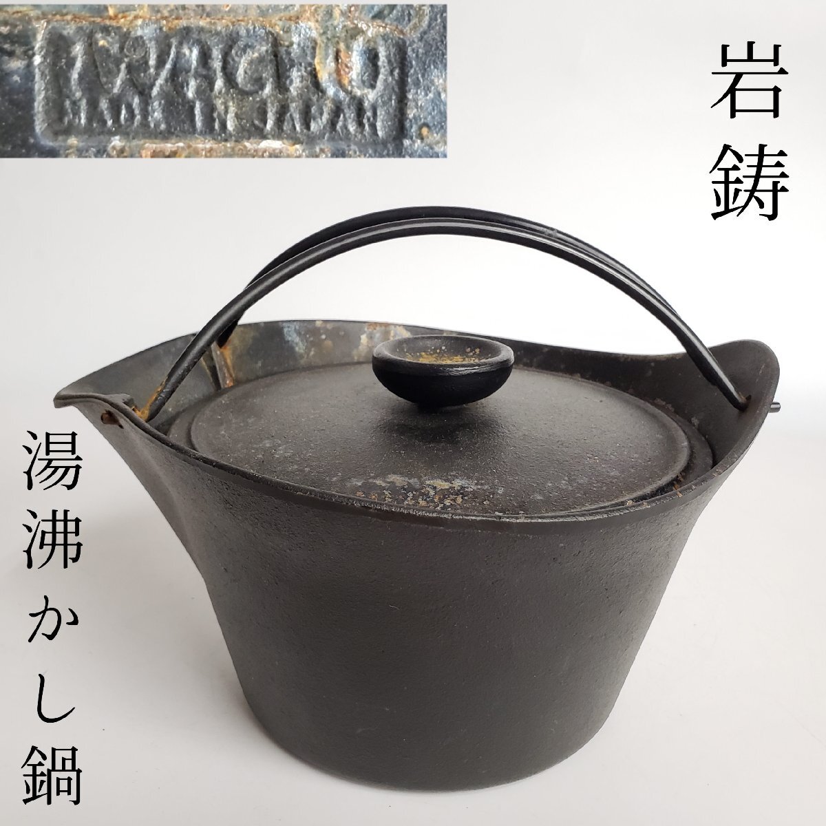> 湯沸かし鍋 岩鋳 IWACHU 南部鉄器 鉄鍋 両手鍋 南部鉄瓶 茶道具 現状品 古民具 古道具 アンティーク レトロ 小道具【100n1302】