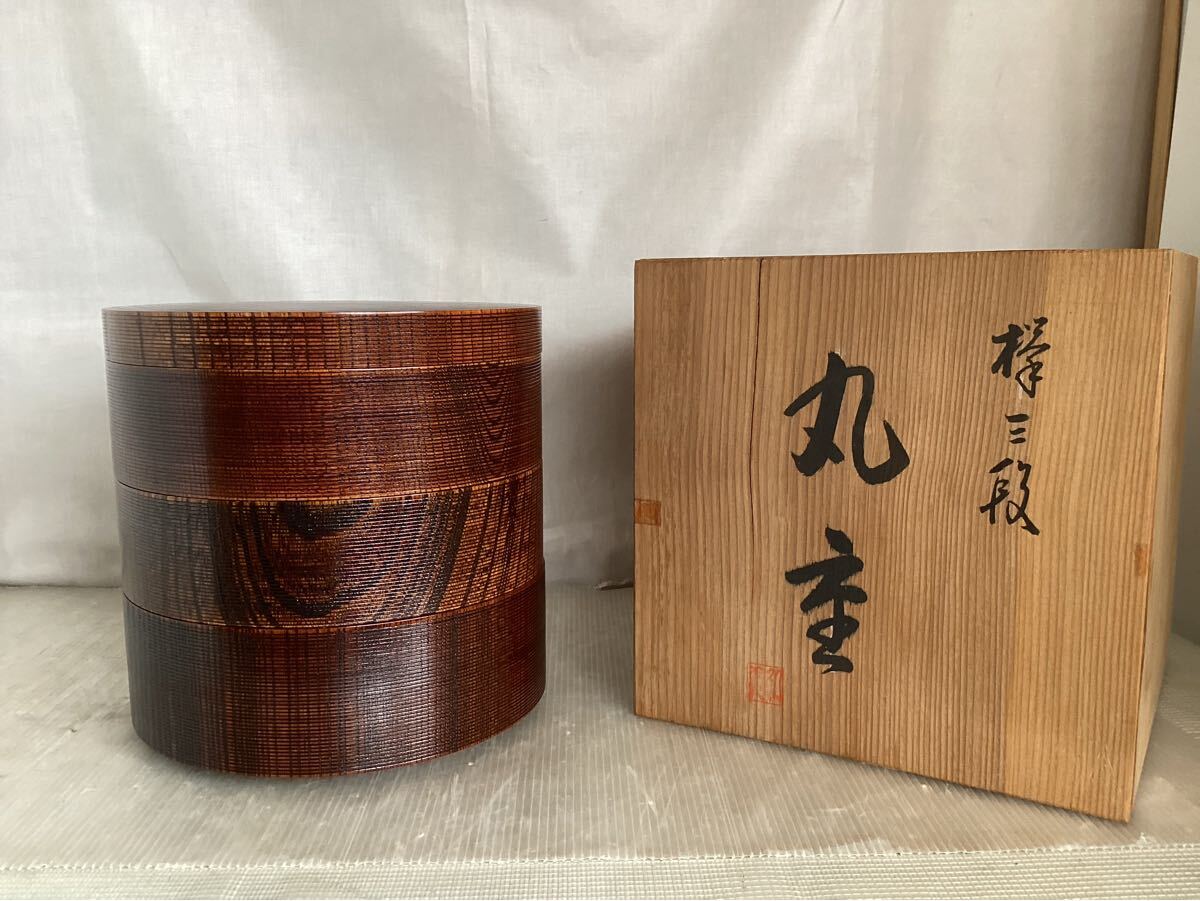 - 【K0743】欅三段丸重 お重 三段重ね 箱入り未使用