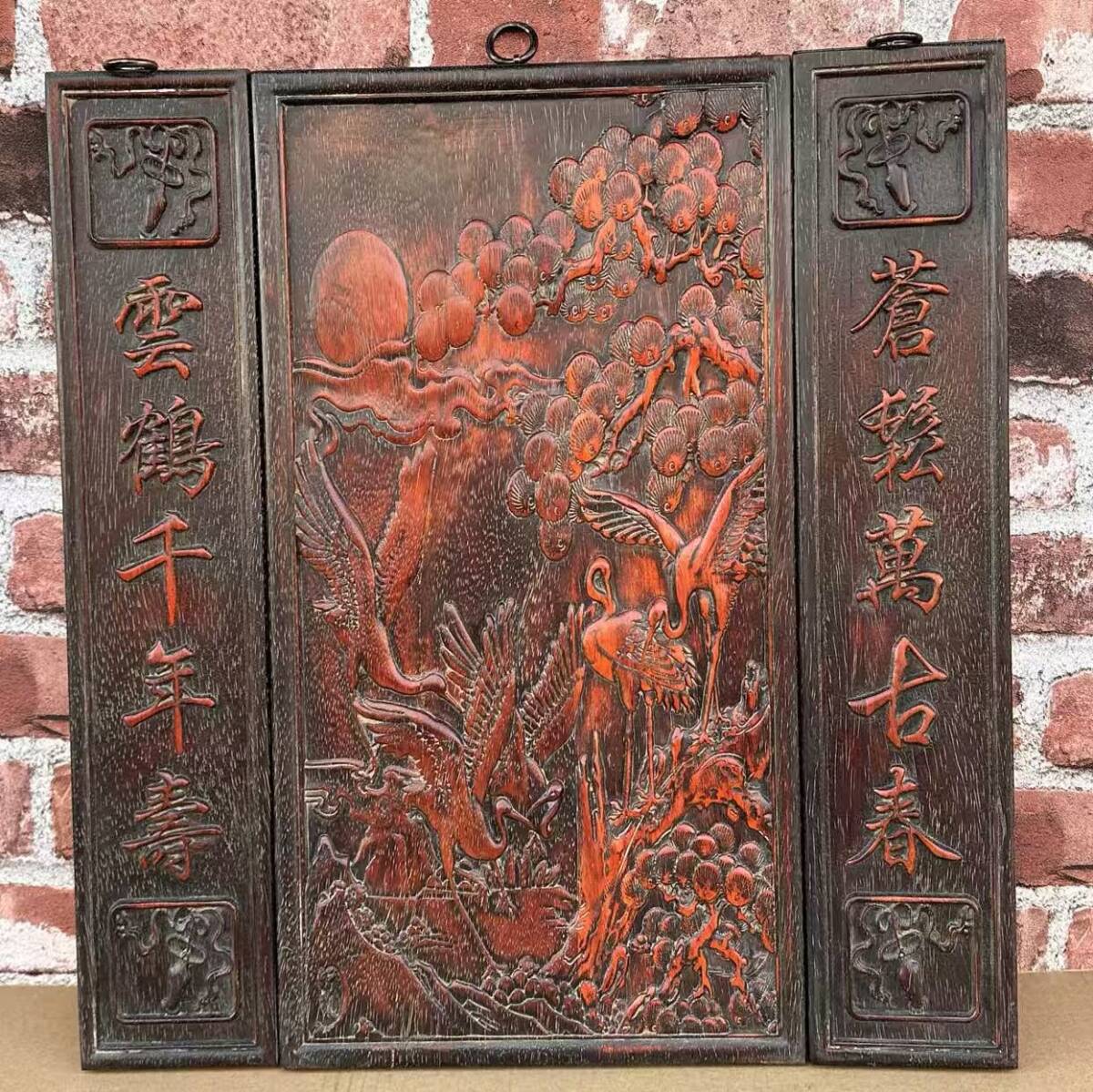 - 清時代 古紫檀木彫 高浮山 【松鶴延年】 中堂扁額 秘蔵 壁挂 墻挂 中国唐物 時代物 骨董 中国古美術 古家具 古置物 木製 東洋彫刻 古賞物 9