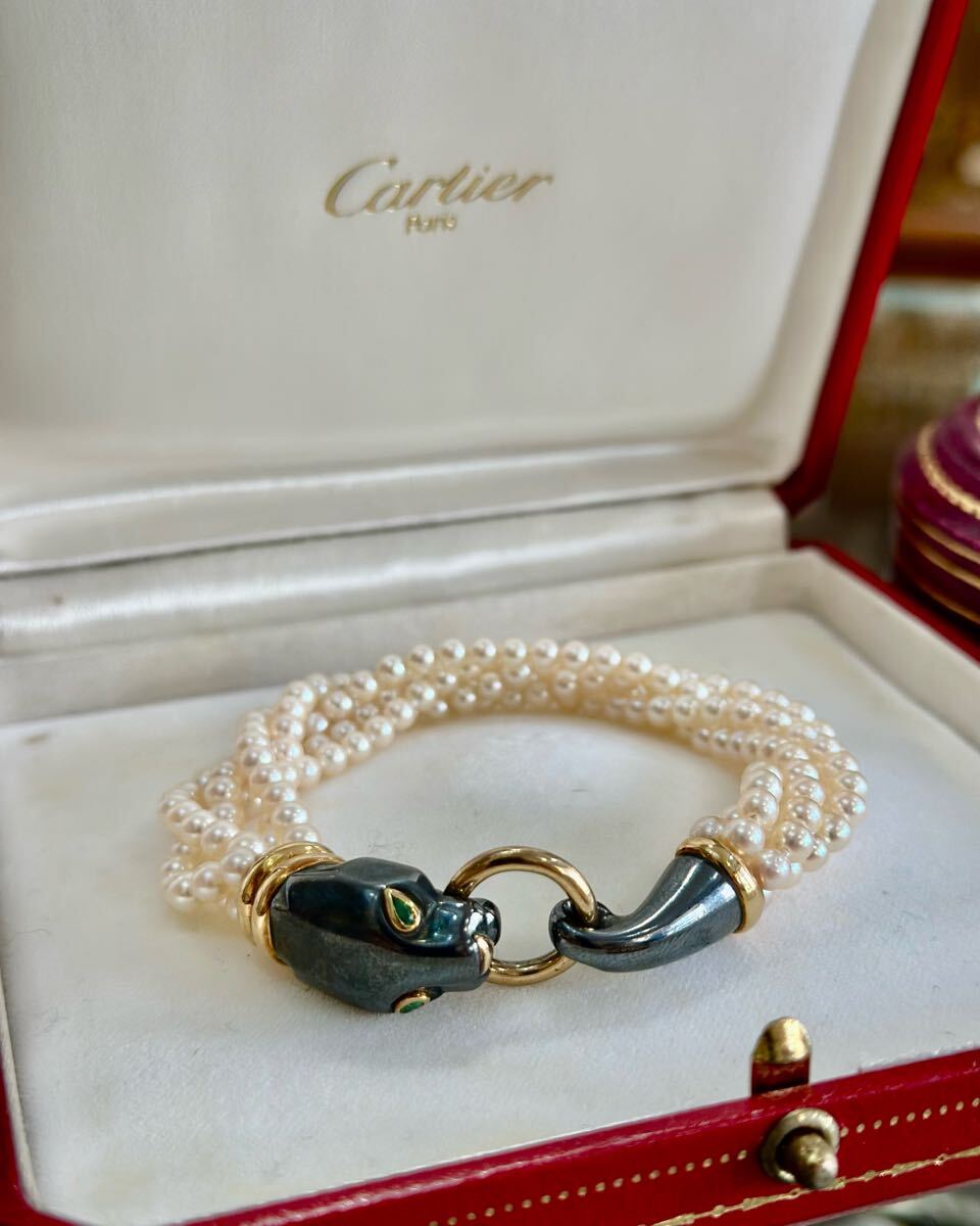 - 【貴重】カルティエ(Cartier) エメラルド/ベビーパール パンテール 750/シルバリウム ブレスレット 美品中古 K18