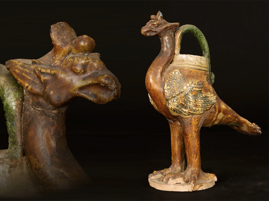 ●中国 三彩 鳥尊 鳳凰 鳥 壺 中国美術●