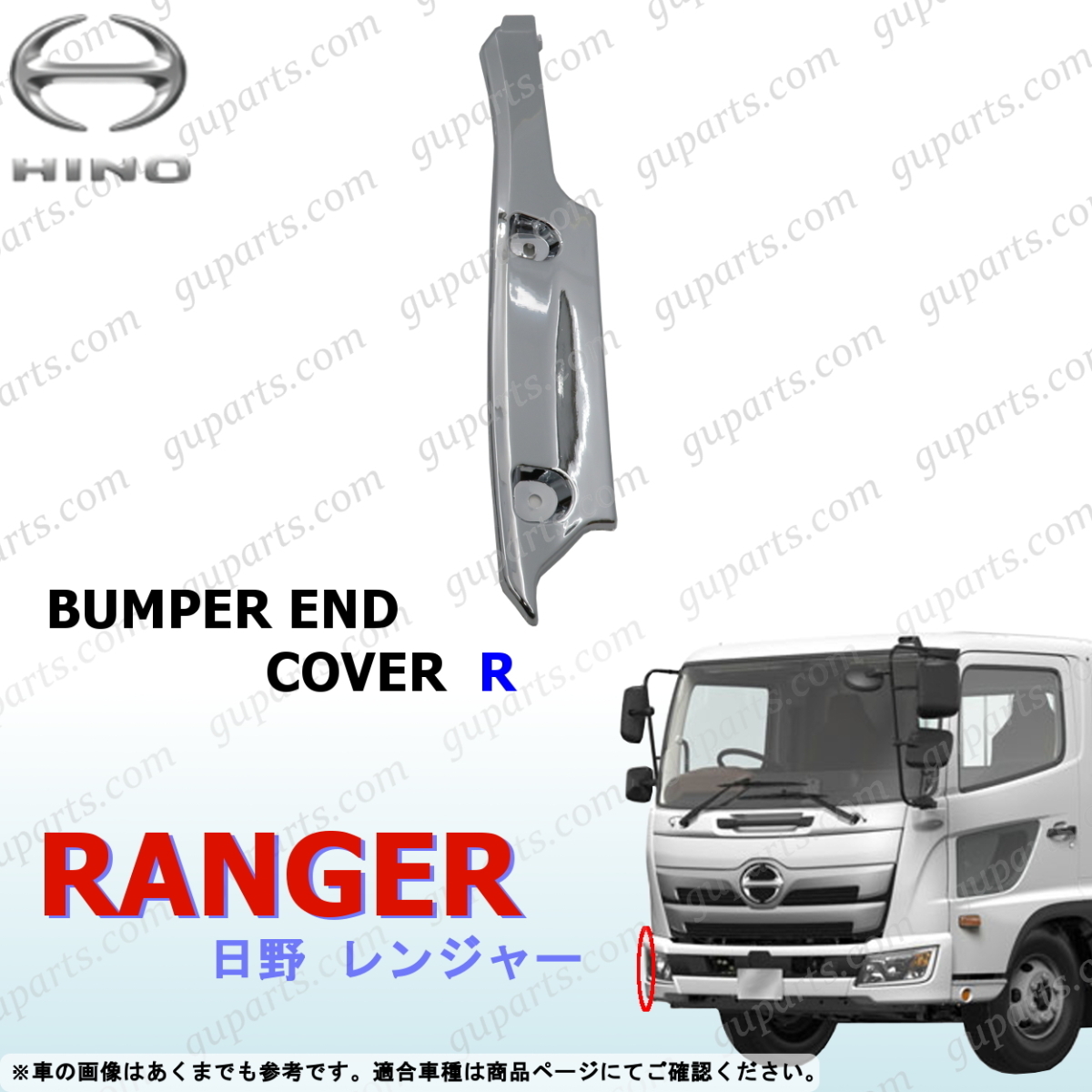 > 日野 17 レンジャー H29~ 右 フロント バンパー エンド カバー オール クローム メッキ デコトラ 外装 サイド ガーニッシュ