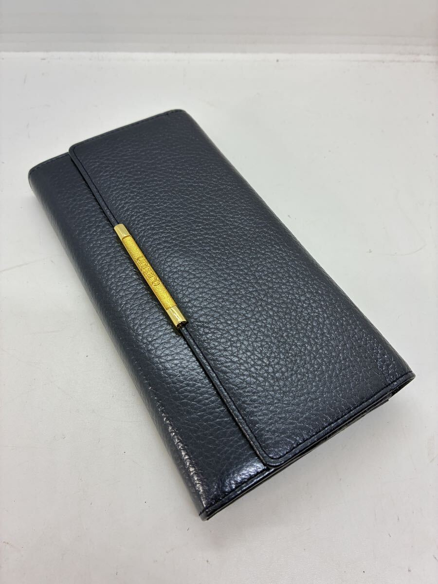 - 美品 ungaro 長財布 レザー ネイビー がま口 ウンガロ