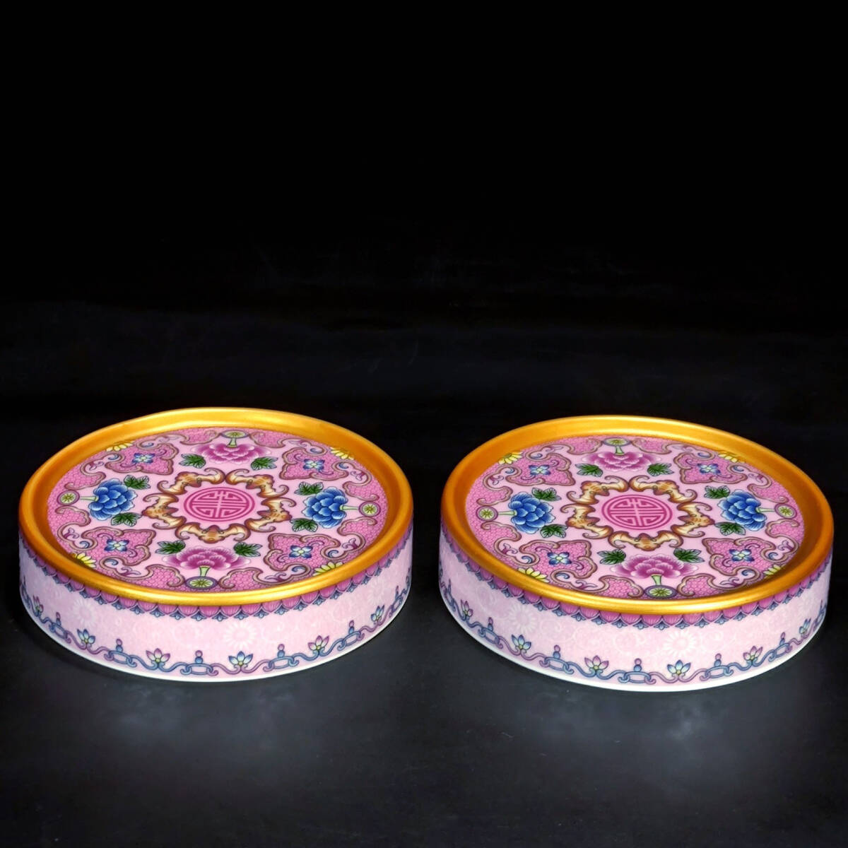 > 9+GV4919「東洋美術」 人間国宝 磁器製品【清朝乾隆帝の時代の蓋付きホーロー鍋つかみ一組】 旧物 孤品 珍品 陶磁器 収蔵価値が高い