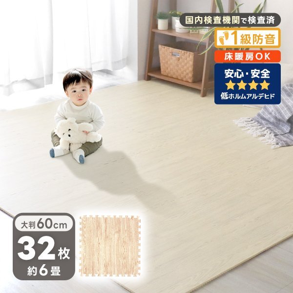 - ジョイントマット 木目調 32枚セット ナチュラル 大判 60cm 6畳 床暖房対応 防音 抗菌 防水 ノンホルマリン ベビーマット フロアマット