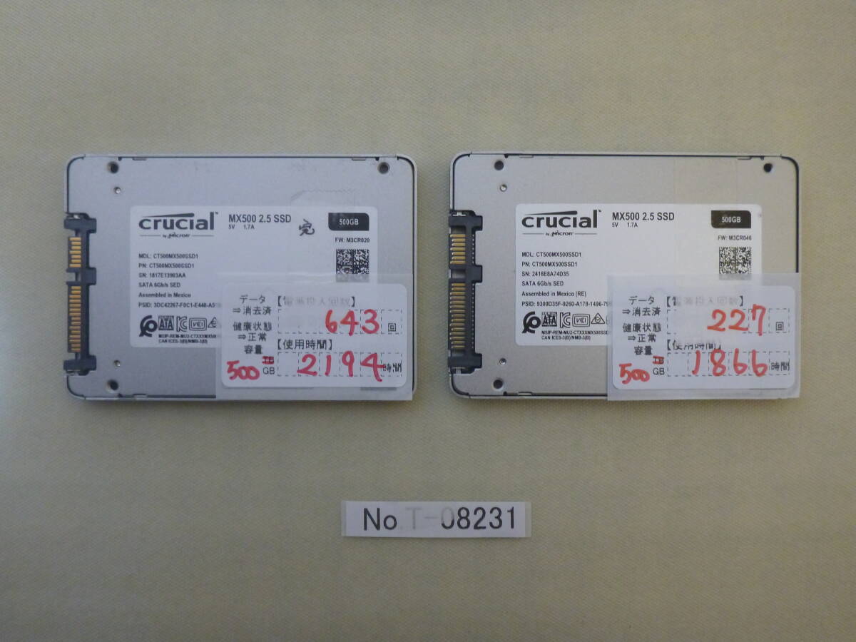 > T-08231 / SSD / crucial / 2.5インチ / SATA / 500GB / 2個セット / ゆうパケット / 消去済み / ジャンク扱い