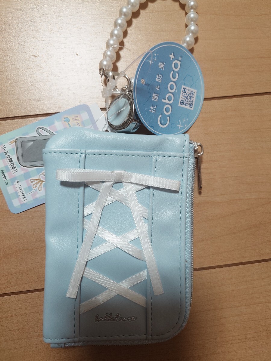 - 新品☆リボンパールストラップキーケースパスケース サックス