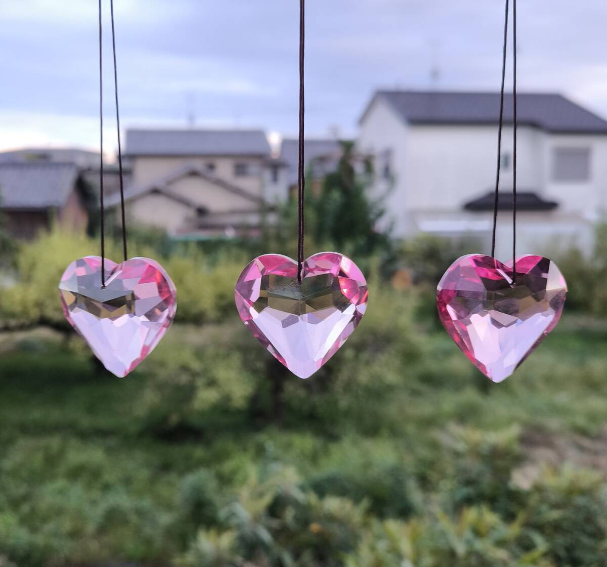 - 3個セット★ピンクハート クリスタル サンキャッチャーハート型 紐付き 窓辺やお部屋の飾りに◎