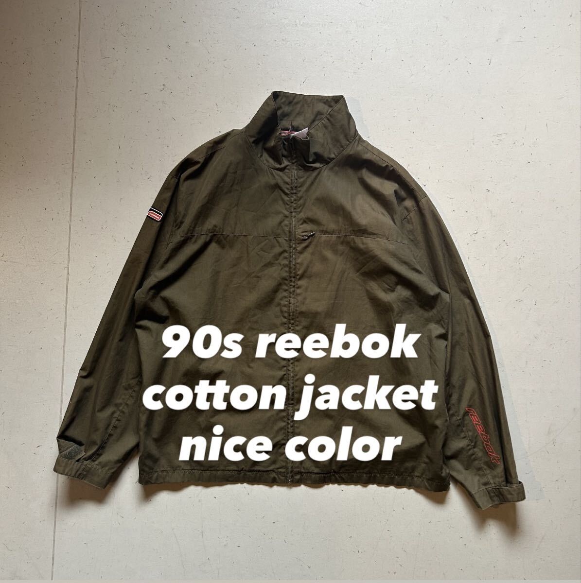 > 90s reebok cotton jacket リーボック コットンジャケット カーキ 止水ジップ