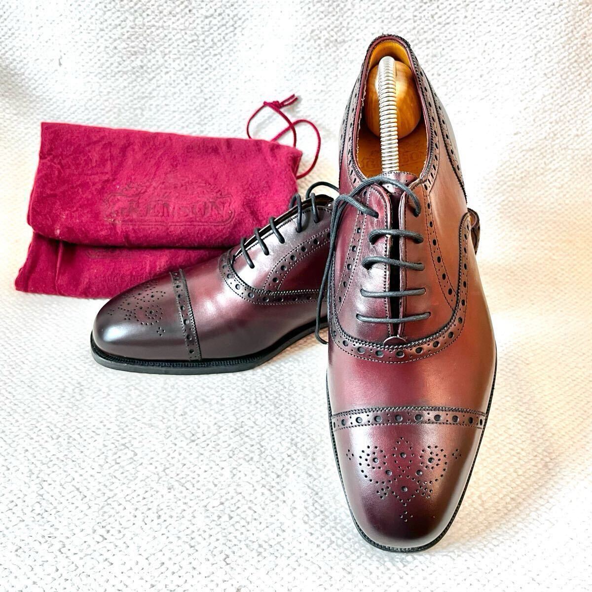 - 未使用 GRENSON グレンソン パンチドキャップトゥ メダリオン OXFORD FOOTMASTER ドレスシューズ 革靴 バーガンディ 22352 15 7F メンズ
