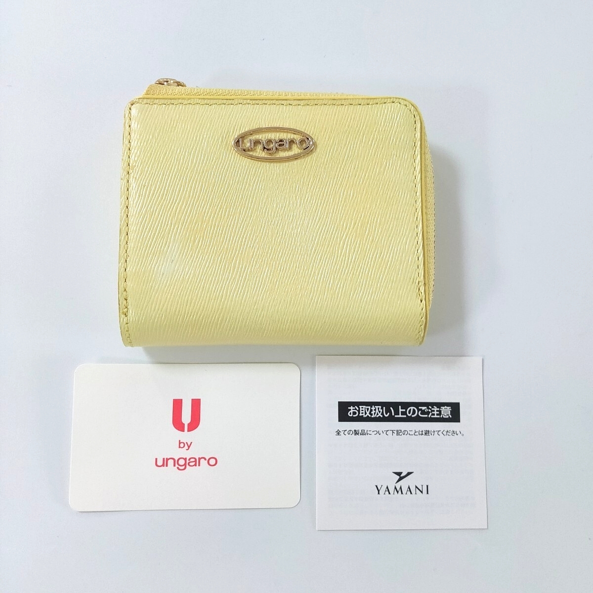 - c 未使用品 ユーバイウンガロ 折り財布 イエロー レザーウォレット 牛革 二つ折り財布 ウォレット