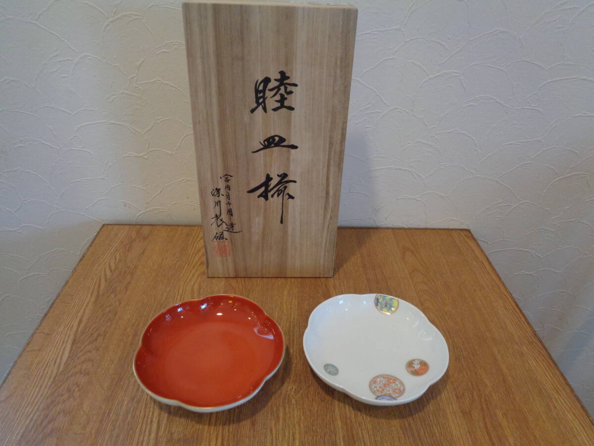 - 宮内庁御用達 深川製磁 睦皿揃い 寿赤絵 未使用保存品