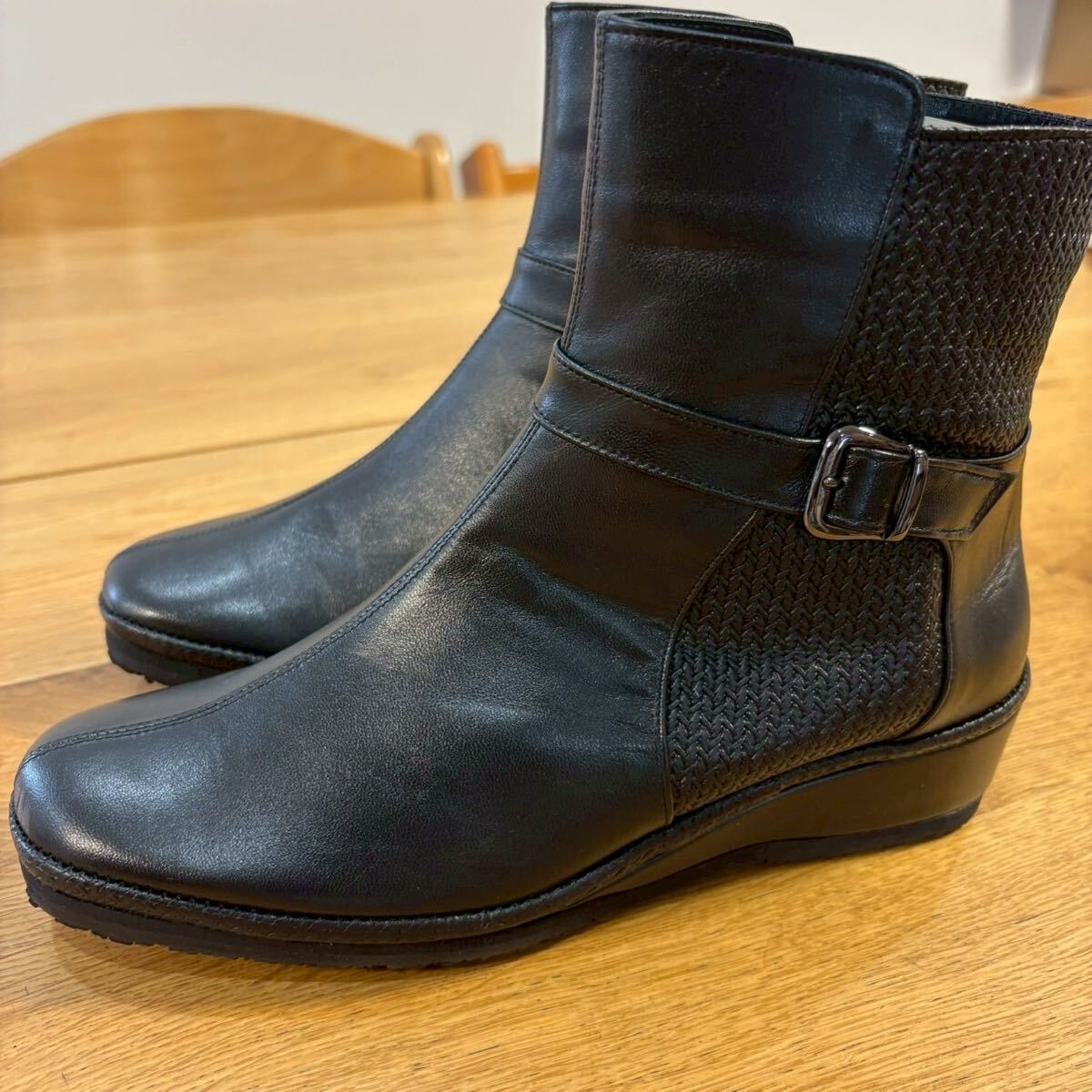 - ほぼ未使用 保管品 黒 ショートブーツ サイドファスナー レザー ブーツ 23cm 12-3
