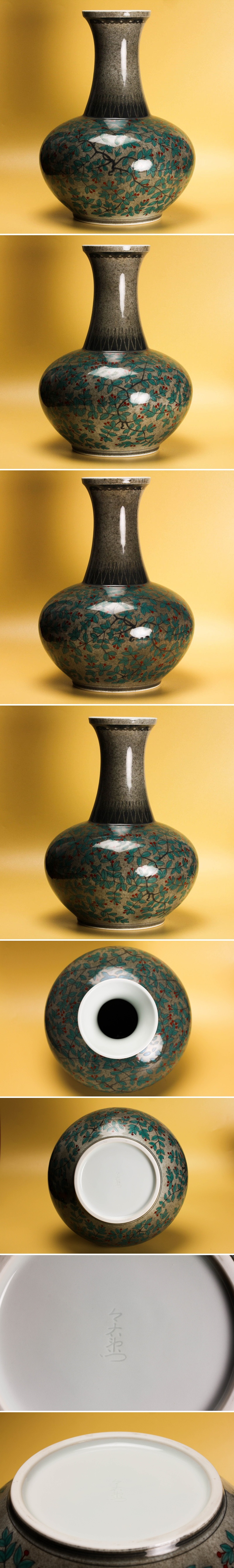 - 人間国宝 十三代 今泉今右衛門 色絵薄墨南天文花瓶 本物保証