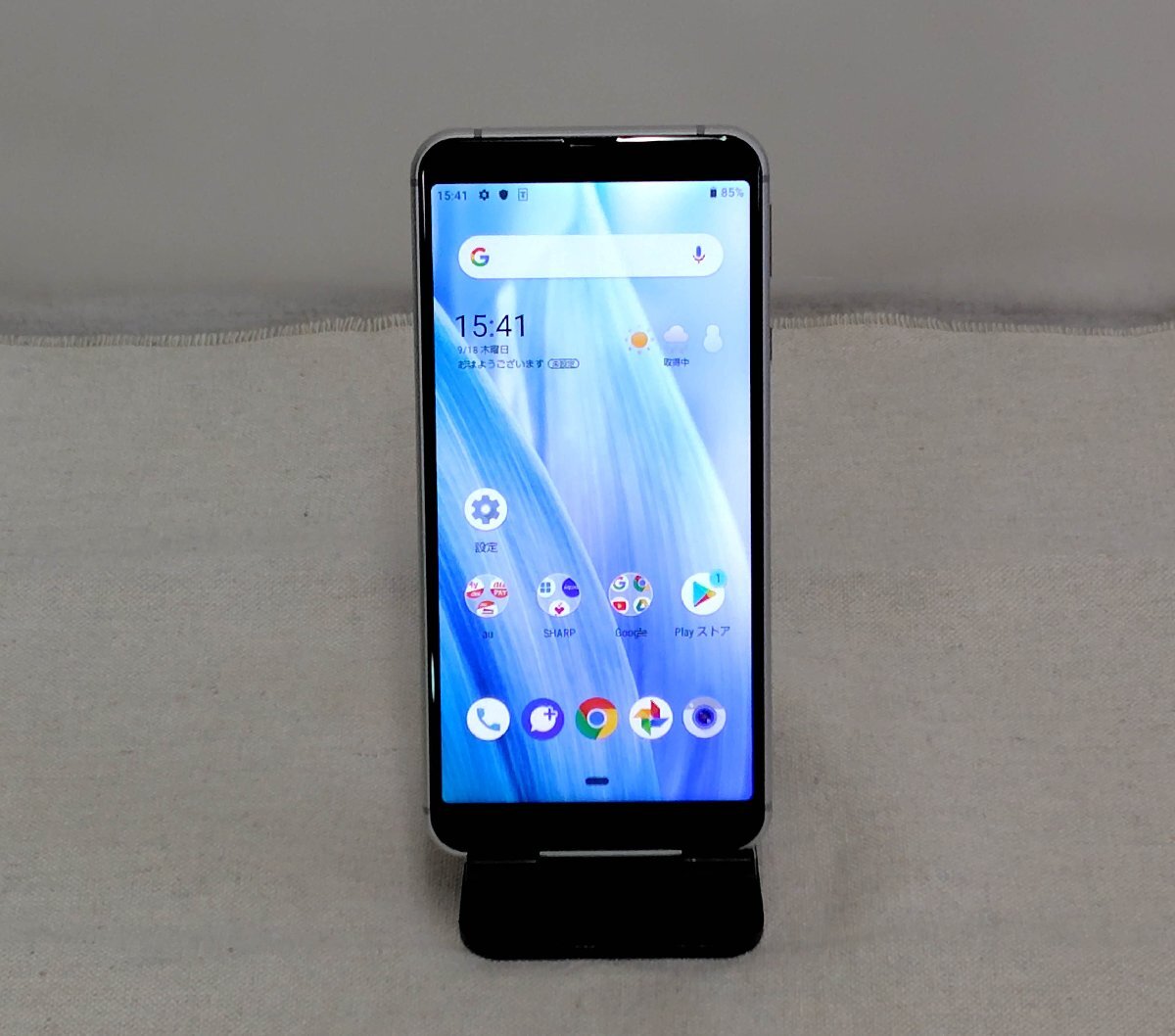 - 【展示デモ品/通電確認済み】中古品 SHARP AQUOS sense3 basic SHV48 シルバー RAM/3GB ROM/32GB 利用制限判定/〇 本体のみ I729