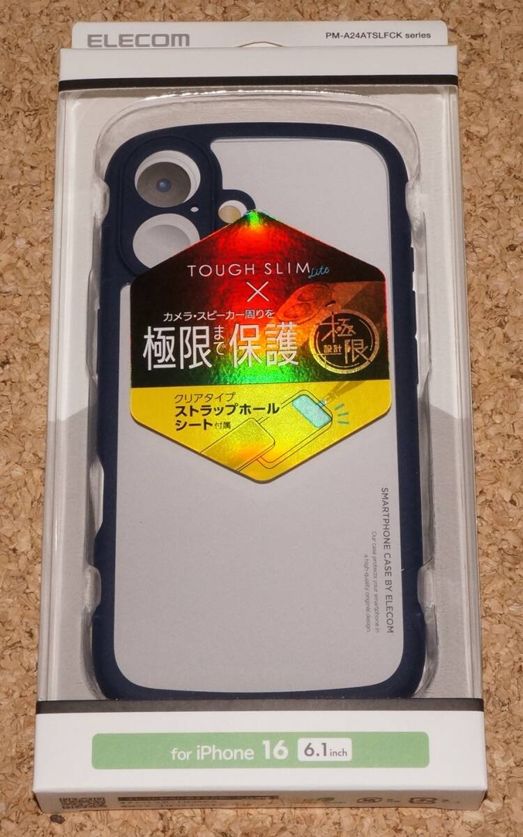 > ★新品★ELECOM iPhone16 TOUGH SLIM LITE 極限 ストラップホールシート付き フレームカラー ネイビー