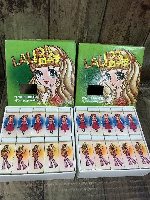 - T3け9/25 ローラ LAURA 消しゴム HINODEWASHI 2箱 昭和レトロ 当時物 デッドストック