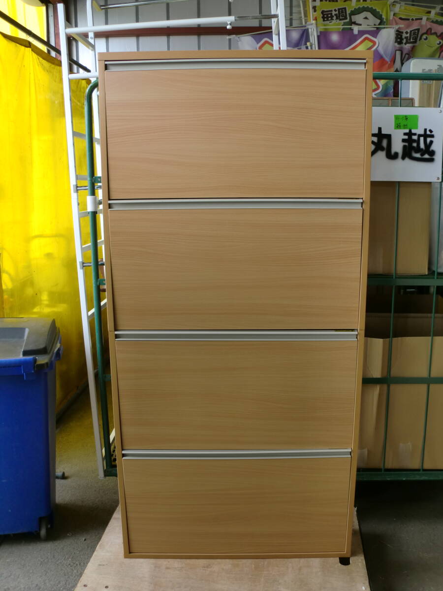 > ♪♪【7I25②】ベルーナ 薄型フラップシューズラック 幅75 ナチュラル フラップ扉 靴収納 靴箱 シューズボックス 下駄箱 未使用♪
