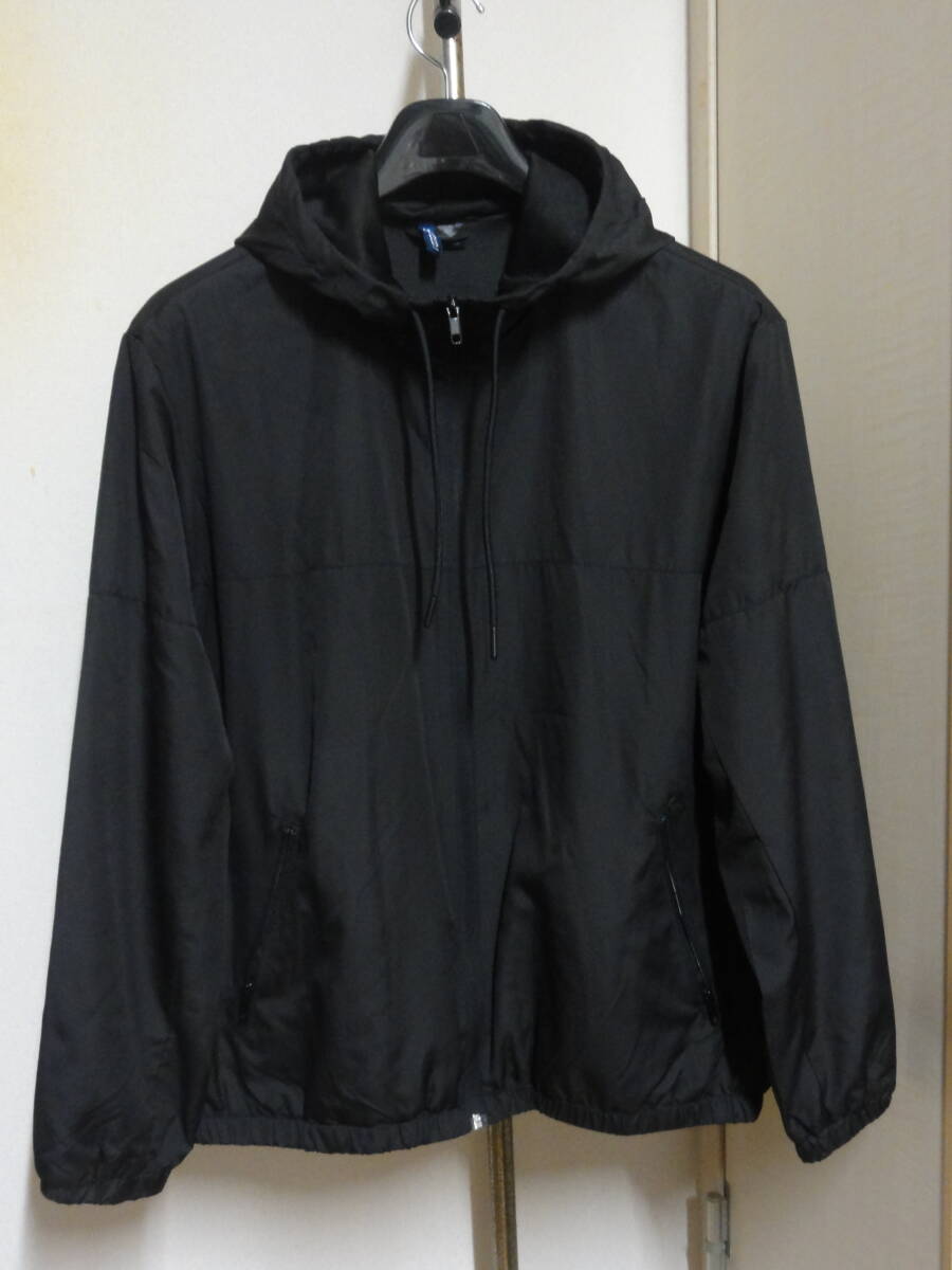 - 格安大きい(胸囲120cm位)・H&M(エイチアンドエム)・黒系地・フード付きジップブルゾン(アウトドアブルゾン・マウンテンパーカー系?)M